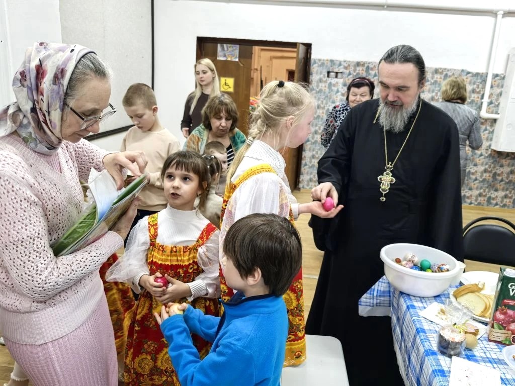 Настоятель протоиерей Александр Хмылов обратился к собравшимся с проповедью о Пасхе. За богослужением церковные песнопения исполнял хор воспитанников воскресной школы прихода. Затем ребята на колокольне учились звонить пасхальным чином. Далее в доме культуры села Акатьево состоялся пасхальный концерт воскресной школы. Для дтей были устроены традиционные пасхальные игры с угощениями.